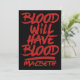 Denna design har ett citat från Shakespeares Macbeth "blod kommer att ha blod".