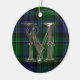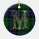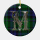 Ornate monogram brev M-ornament, med MacCallum-klans tartan pläderad som bakgrund. Underbar tittar familjerättslig prydnadstyp. Gör en underbar presentdekoration och dekoration för andra användor i huset.