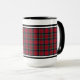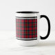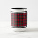 Kaffe mugg med tartan för Klan MacDuff och dess septer, inklusive Abernethy och Lange. Körsbärsrött, grönt och blått skotskt fladderat mönster från 1816, med svarta accenter.