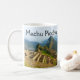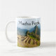 Fotografi av forntida ruiner av Machu Picchu i Peru. Bilden spegel tryckt på motsatt sida. Anpassadets text.