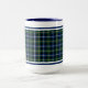 Kaffe mugg med tartan för Klan MacNeil och dess septer, inklusive MacGuckin och Niall. Black, mörk royal blue and forest grönt Scottish plaid mönster från 1831, med ljusa gult guld och vita accents.