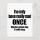 Lustigt, sarkastiskt textmönster som säger: Jag har bara blivit arg gång.. Kanske det en dag slutar.
