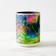 Min original- vattenfärg skrivev ut på en dricka mugg som presenterar den Omphalea shrubuppsättningen i en briljant solnedgångbakgrund som besöktes av solnedgångmalar (Chrysiridia Rhipheus), som är infödda till Madagascar, afrikan.