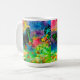 Min original- vattenfärg skrivev ut på en dricka mugg som presenterar den Omphalea shrubuppsättningen i en briljant solnedgångbakgrund som besöktes av solnedgångmalar (Chrysiridia Rhipheus), som är infödda till Madagascar, afrikan.