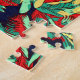 Utandningssynen av djärvt, exotiskt löv i djungeln läggs i vackra silhuetter, vilket belyser de förändringar som naturens ständigt föränderliga årstider skapar i en mängd intensiva färg.