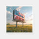 En stor affischtavla med "Made in America" står på framträdande plats i ett öppet fält, med den amerikanska flagga som bakgrund
