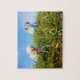 Fubby poppetjes die madeliefjes plukken in het gras. Margriet bloempjes die romantiek uitstralen en liefde voor elkaar.