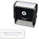 This self-inking stamp features a sleek, modern design with a black base and clear top, showcasing customizable text in a clean, sans-serif font. The minimalist layout emphasizes clarity and professionalism, making it ideal for personal or business use. Its simple yet elegant aesthetic conveys a sense of sophistication, perfect for adding a personalized touch to documents or correspondence.