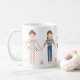 Stylish girl in Paris mug, featuring a chic Parisian girl in her many outfits from day to night.