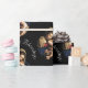 Gorgeous design features a reproduction of the famous 17th-century painting of the Blessed Virgin Mary with Christ Child by artist Giovanni Battista Salvi displayed in an oval and patterned against a black background. Customizable text is displayed as an arch in an elegant white font. Also available with red or white background.