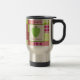 En läraremugg som presenterar en illustration av en grön äppleinsida en kvadrera med gröntklippning. Bakgrund är den madras inspirerade plädpatchworkdesignen. Personifiera med ditt namn.