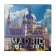 Souvenir visar en ikonisk bild av Palacio Real och Catedral de la Almudena i Madrid, Spanien.
