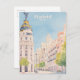 Madrid Spain Gouache Paint Illustration Travel Vykort