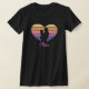 Mãe - Mor och Child Retro Heart Silhouette. Den här söta svarta t-tröjan är perfekt för alla mor vars barn kallar henne Mae i stället för Mamma. (elaken mor eller mamma på portugisiska) Den här snyggtens svarta skjorta har ett hjärta i varma pastellreflektor färg med en silhuett av mor som håller sitt baby barn. Under det står "Mãe" i ett våldsamt skript för lila. Den här svarta perfekten ger en gåva till en förväntad make eller ny man, Mors dag-gåva, Valentindagspresent eller gåva till din Mae.