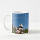 En fotografera av den gröna citadelen, Magdeburg, Sachsen-Anhalt, Tyskland presenteras på denna keramiska mugg för vit.