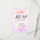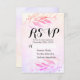 Bröllop Svar / Vänligen svara kortmallar - Vintage Soft Magenta lax Hot Pink lila akvarellblad och handskriven skrift på akvarellbakgrund.
