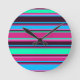 Magenta-, Aqua- och Blue Stripe-väggsluss Rund Klocka