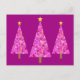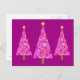 Vykort med modern användning av ett klassiskt motiv för Julgran, magenta blommigt med djup magenta