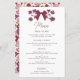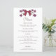 Menylista för Coquette- och bröllop-middag med hand plockade som illustrerar magenta- och blomknäring.