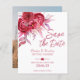 Magenta burgundy ro sparar datumet för budgeten inbjudan med par-foto längst bak.