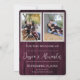 Meddela din bröllop-dejt till vänner och familj med den här enkla Magentan för elegant och raka foton Spara datum. Meddelandedesign har en bakgrund av riken och placeringar för tre foton av paret lycklig kompletta med en modern textdesign.
