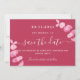 En modern och elegant Spara datum för ett bröllop. En magenta som har dekorerats med eukalyptus-stammar, sprickor. Anpassa och lägg till ett datum och namn. Texten: Spara datumet skrivs med ett stort trendig-handskript i stil.