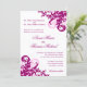 © 2012 Socialite Designs. Vackra hörnsnurror och blomsterliknande utsmyckningar på bröllopsinbjudan. En elegant inbjudan för paret som firar sitt bröllop under våren eller sommaren. Designen på baksidan gjordes tillgänglig så att du kan lägga till ytterligare information, till exempel information om bröllopsmottagningen. Se hela samlingen av matchande bröllopsprodukter med designen.