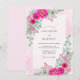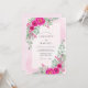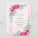 This design features a vibrant color palette of deep magenta and soft blush. Lush ranunculus blossoms are paired with silver dollar eucalyptus and delicate berry sprigs for a fresh aesthetic. Soft watercolor washes accent the edges, creating an airy and romantic feel for a seasonal event.