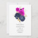 Trendig färg för året 2023 viva magenta blomster par shower inbjudan med inslag av marinblå.