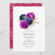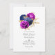 Magenta Navy och Guld Blommigt Bröllop QR Code Osa Inbjudningar