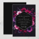Embrace a dramatic and romantic atmosphere for your special day. This elegant design features a lush arrangement of vibrant magenta, fuchsia, and deep purple anemones and blossoms. Set against a dark, noir background, the jewel-toned florals create a stunning and sophisticated contrast. This artistic composition is perfect for an enchanting evening affair.
