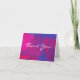 Ett tackkort från bröllop. En vattenfärgsmålning i magenta och blått i abstrakt stil med tjocka fet penseldrag. Tack för att meddelandet finns i kortet för att du vill att det ska gå att ersätta texten med ditt eget namn.