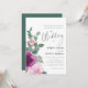 Watercolor floral elements designed in beautiful colors, set over a white canvas in front, with a matching botanical green canvas on the back. The design is finished with elegant modern script calligraphy...highlighting the occasion, bride and groom's names and all other event details. The result is a modern, contemporary, elegant wedding save the date. Pair with matching products, for a complete wedding suite.