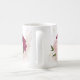 Vacker kaffemugg med magenta och rosa blommor och gröna blad