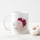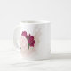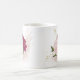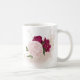 Vacker kaffemugg med magenta och rosa blommor och gröna blad