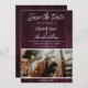 Skapa ett unikt tillkännagivande med detta Magenta Rustik Foto Spara Datum. Tillkännagivandet har en rustik trähydd bakgrund och plats för att lägga till ditt eget foto med en elegant textdesign. Ytterligare färger finns tillgängliga med denna design.