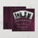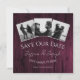 Meddela din bröllopsdag till vänner och familj med detta enkla och eleganta Magenta Rustika Fotokollage Spara Datum. Meddelandets design har en rik trähistorik och utrymmen för tre foton av det lyckliga paret komplett med en modern textdesign.