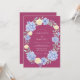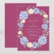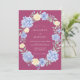 Denna design har en rik magenta bakgrund prydd med ett frodigt arrangemang av akvarellblommor. Ömtåliga blå hortensior och mjuka gula rosor är sammanflätade med salvia grön bladverk för att skapa en levande, romantisk atmosfär. De konstnärliga penseldragen frammanar en känsla av fantasifull elegans, vilket gör den idealisk för en ljus sommarhändelse.