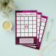 Magenta slingor & fotspår flicka baby shower spel. Sida ett är Baby Shower Bingo och sida två är "Vem vet mest om mamma?".