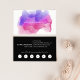 affärskorten med chic vattenfärg har ditt namn eller företaget namn som har ett lager på en blommande inkblot-illustration i ljusa, färgstarka nyanser av fuchsisk rosa, magenta och violett. Lägg till kontaktinformationen för fullt i svartvitt. Innehåller ditt lojalitetserbjudande för anpassningsbarna (visas med "njut av 20 % av alla tjänster efter fem besök") och sex punchouts.