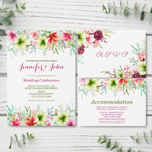 Magentan Röda Amaryllis Blommigt Bröllop Inbjudningar