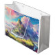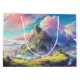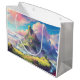 Giftväska med magisk animallandskap med berg, vattenfall, moln och ett vackert himlar.