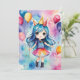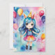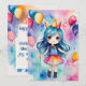 Fira en speciell någons födelsedag med det här fantastiska "Magic Birthday Celebration Card". Det här kortet är en perfekt för att sprida glädje och upphetsning. Det är ett vackert exempel på en glad flicka med pulserande blått hår, klädd i en färgstark kondition och omgiven av festliga ballonger. Den visuella designen och den klara, vattenfärginspirerade bakgrunden tillför en gnutta magi till varje födelsedagsfirande. Anpassa insidan med ditt eget hjärtliga budskap för att göra extra speciellt.