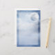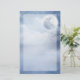 Stationär papper med ett magiskt fantasi himlar med flytande blå moln och ett stort vackert måne. Två vita svanar flyger av tillsammans.