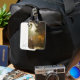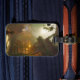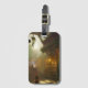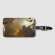 Den vackra bagagetaggen har en magisk bokbutik som är kapslad i en förändrad skog, med rader av bokar och ljus bland mystiskt träd grenar. Digitalmålning skapat med AI-genererande software. Perfektens gåva till bok älskare som spelar spel med kärlek-kort!