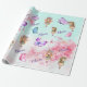 En vattenfärg målade barns inslagning av pappert lakan i ljust färgad bakgrunder. Magisk med faires och fjärilar kan anpassas till namn.