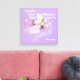 En ängelliknande älv flyger över den här berömvärda personligens lavender canvas för flickor. Artisten, Leandra. Ord säger: "Sprinkle Fairy Dust where You Go" Hennes vingar är blek gult och hennes vita blommande klänning accentueras med lavender. Hon bär ett rosa och tofflor och här långa, bruna hårklämmor i änden. Hon håller en boll av ljus och släpper ut mjölkdamm i luft!