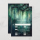 En vit vattenfärgsillustration av lush foliage i den framväxande grönten, som är full med fairy ljus och magiskt damm, dekorerar den här vår sommarens fall-bröllopsbröllopsmat med ett förtrollat skogstema. Ett elegant, ett modernt svarskort för ett sagolkort för bröllop. Perfekt för brider som kärlek den sagda skogsmiljön, den älvskog eller den älvträdgårdsTemat och framkallar grönt, mauve och guld.