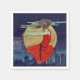 I vintage bild finns en mystisk magisk kvinna som var klädd 1920:s stil-röda klänning och hatt flytande framför en stor gult måne. Spooky mörk moln är ovanför henne, en blå himmel stad byggnad under natten. Magiskt damm kommer från hennes fingertoppar. Se min butikskonst efter MAR för matchning av produkter med den här designen.