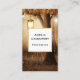 Affärskort med en vismisk antydande illustration i rik brun och gult färg. En magisk mystisk skog med ett stort träd som håller ett gammaldags lternt. Fairy ljus dansar överallt. En fantastisk design.